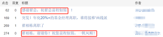 濒临翟相栋的下野,在东财基金吧,不少基民抒发了谢意和不舍,“谢谢翟总”“祝您大有动作”“一直抓有到当今,真实是赚爆了”。